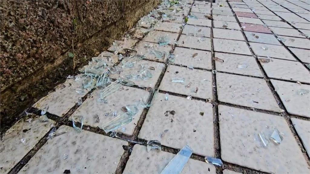 一樓地面滿是被震碎的玻璃。圖/台視新聞爆炸造成姊弟兩人臉部撕裂傷,弟弟胸部有一度燒燙傷,身上還有玻璃及碎裂物刺傷,消防人員立即將兩人送醫,所幸意識清楚,沒有生命危險。據了解,兩姊弟平時沒有與人結怨,但鄰居曾目擊有兩名男子多次靠近民宅觀察,目前警方已成立專案小組介入調查,釐清案情。