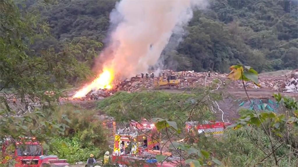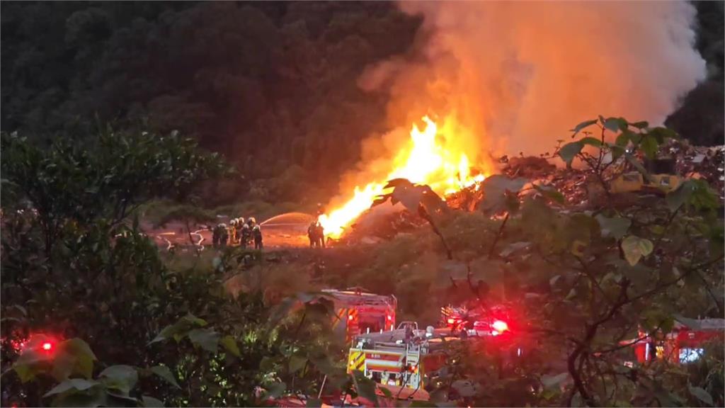 台北市南港區南深路上的垃圾掩埋場,今(19)日凌晨5點多不明原因發生火警,掩埋場內一處垃圾堆竄出大火,火勢猛烈沖天,消防人員獲報後,出動多輛水箱車前往撲滅,目前火勢已經受到控制,不過垃圾燃燒產生大量濃煙,北市環保局提醒附近民眾留意空汙,盡量將門窗關閉並避免外出,如需外出則應配戴口罩落實自我防護。大量濃煙直竄天際。圖/台視新聞台北/綜合報導 責任編輯/網路中心