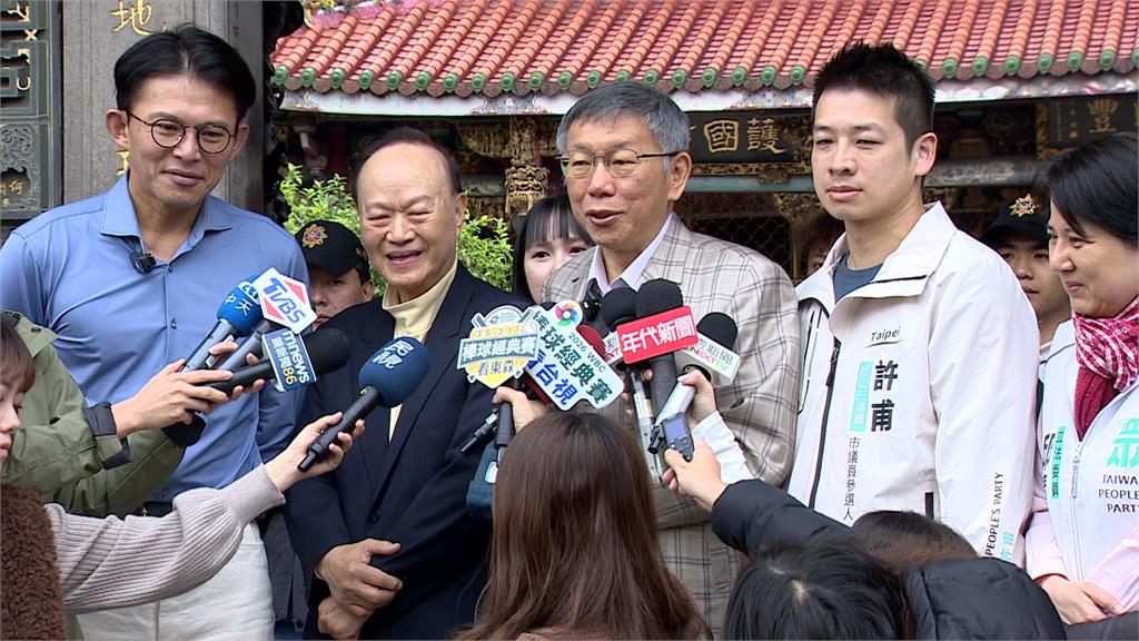 柯文哲、黃國昌兩人一同前往龍山寺參拜。圖/台視新聞蔣何時與川伯「雙母雞」合體?戴:水到渠成