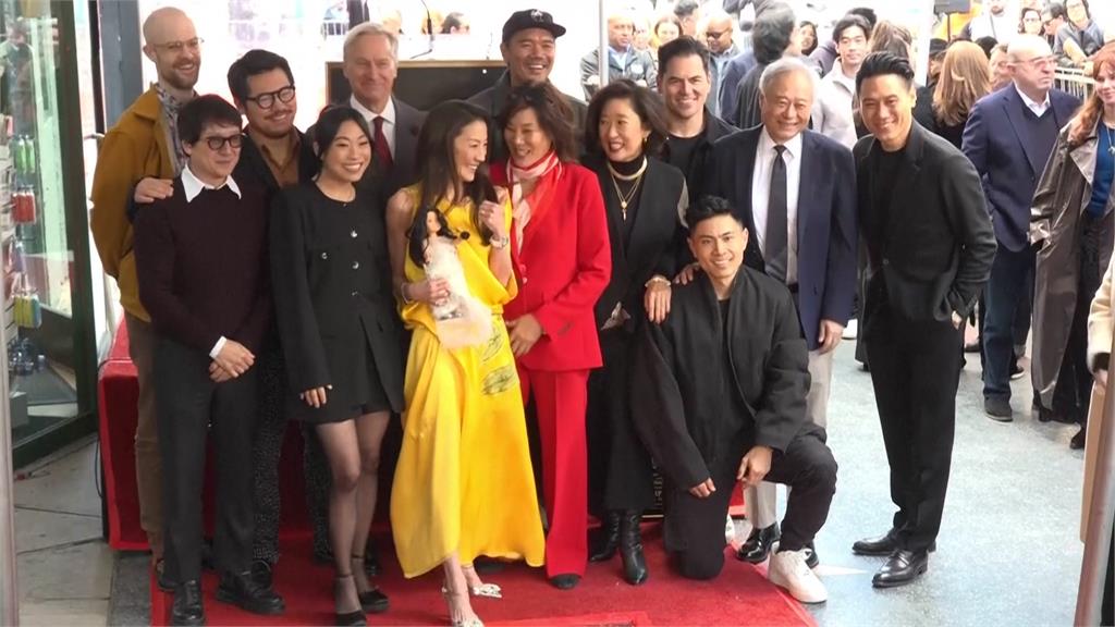 眾星出席楊紫瓊星光大道摘星活動。圖/美聯社、路透社楊紫瓊早年在香港影壇以動作電影走紅,她也在致詞時特別感謝導演李安發現她演戲的潛力,而不是只會武打。她在2023年以《媽的多重宇宙》獲得奧斯卡最佳女主角獎,是目前唯一獲得這項殊榮的華人演員。