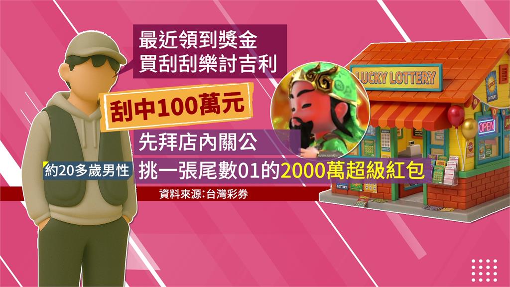 不只新北,在彰化鹿港也有人刮中百萬大獎。一名20多歲年輕人因剛領到獎金,想買刮刮樂討個吉利,先向店內供奉的關公神像參拜後,挑了尾數「01」的2000元刮刮樂,結果刮中100萬元;彩券行老闆透露,中獎當下對方一度愣住,反而沒有立刻興奮。