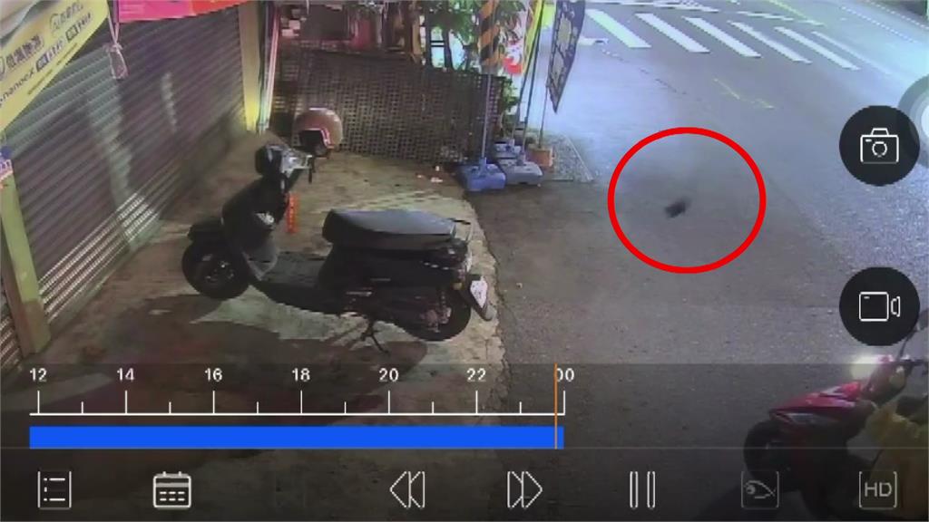 阿婆偷走開溜後,過了約10分鐘卻又騎機車折返回來,並把這偷來的錢包丟到門口,畫面全被監視器拍下。