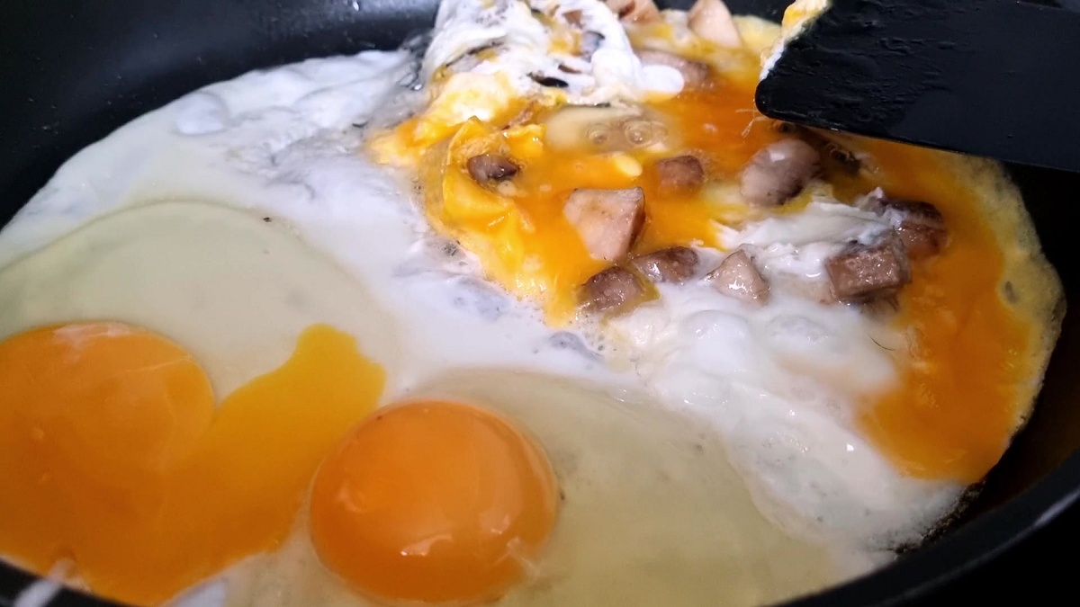• 經典歐姆蛋: 2 顆雞蛋 + 雞胸肉丁/鮪魚 + 起司 + 菠菜。