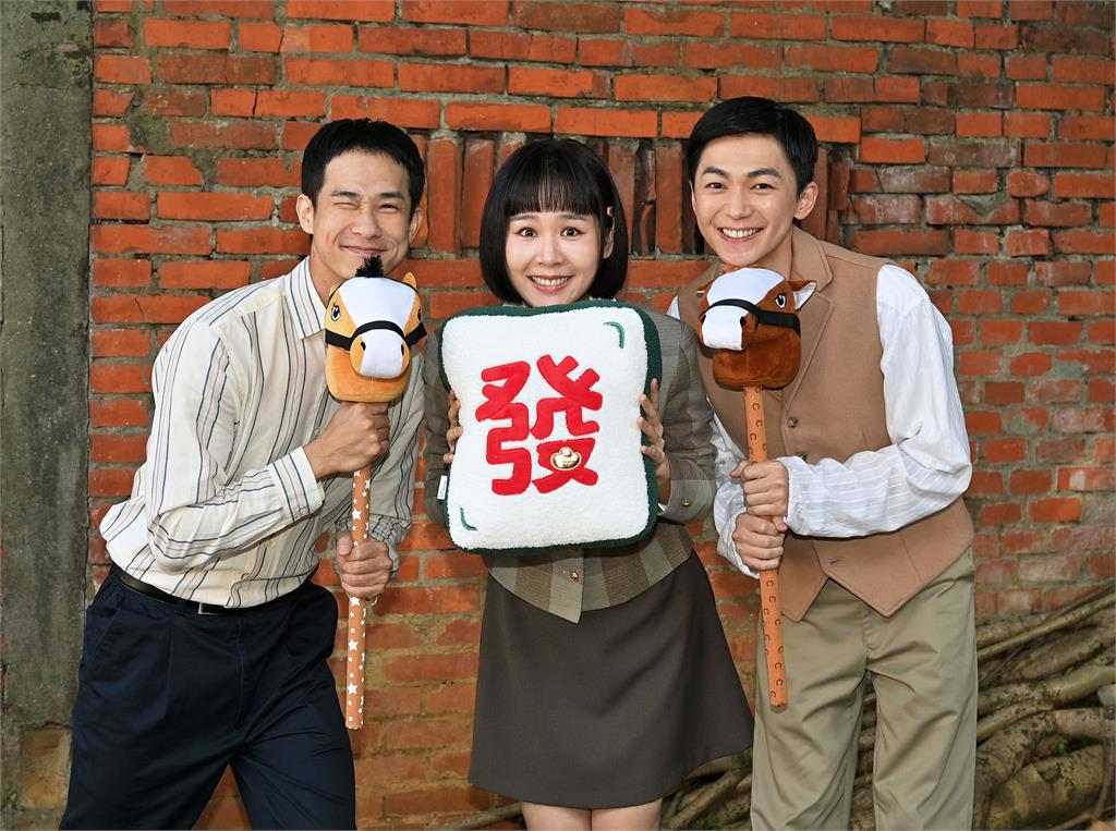 盧彥澤(左起)何宜珊及陳玹宇祝福觀眾馬上有錢、馬上幸福。圖/台視