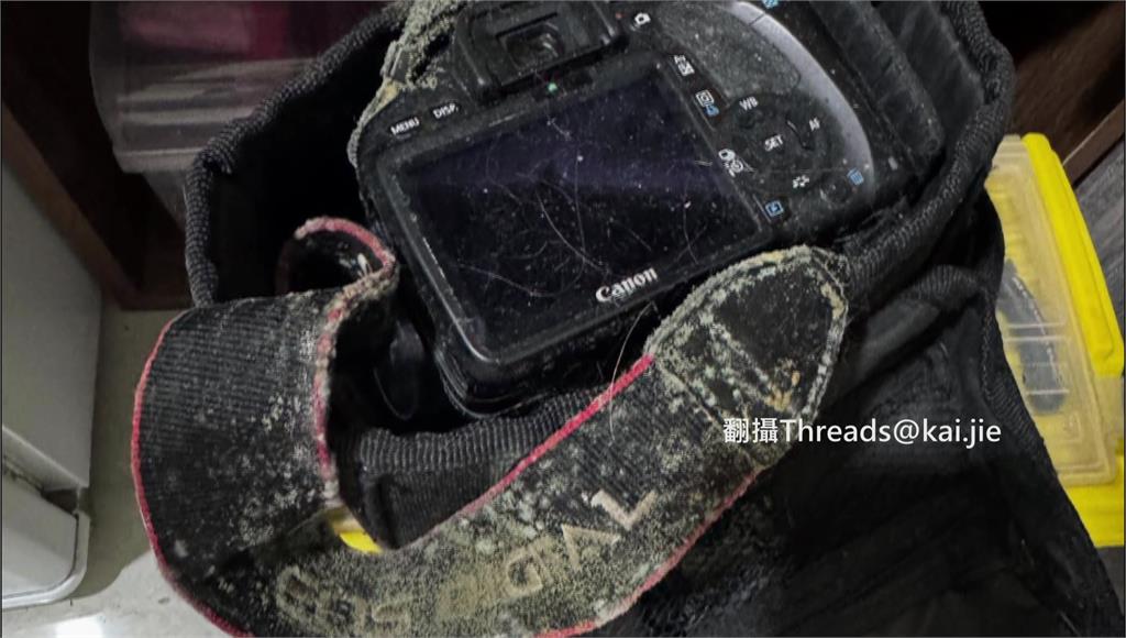 單眼相機佈滿白色霉斑,鏡頭和機身全數遭殃。圖/翻攝自Threads@kai.jie
