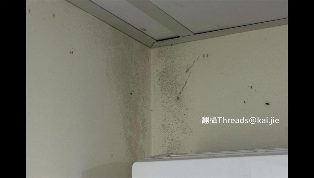牆角和天花板都有發黴。圖/翻攝自Threads@kai.jie