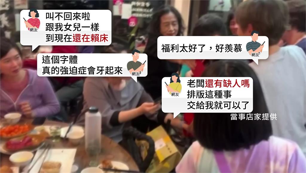 別人放9天上工,他們連放兩個多禮拜,網友看了直呼「叫不回來的員工就跟我家小孩一樣,到現在還在賴床」、「福利好到讓人羨慕」,但也有網友歪樓,討論公告字體實在太亂太雜,更有人詢問店家「還有缺人嗎,可以來幫忙排版」!