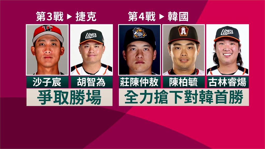接著對上捷克的比賽同樣不能鬆懈,沙子宸、胡智爲兩人守下這一場。最後一戰與韓國的關鍵對決,莊陳仲敖、陳柏毓、古林睿煬壓陣,拿出所有投手資源,盼台韓之戰能夠取勝。