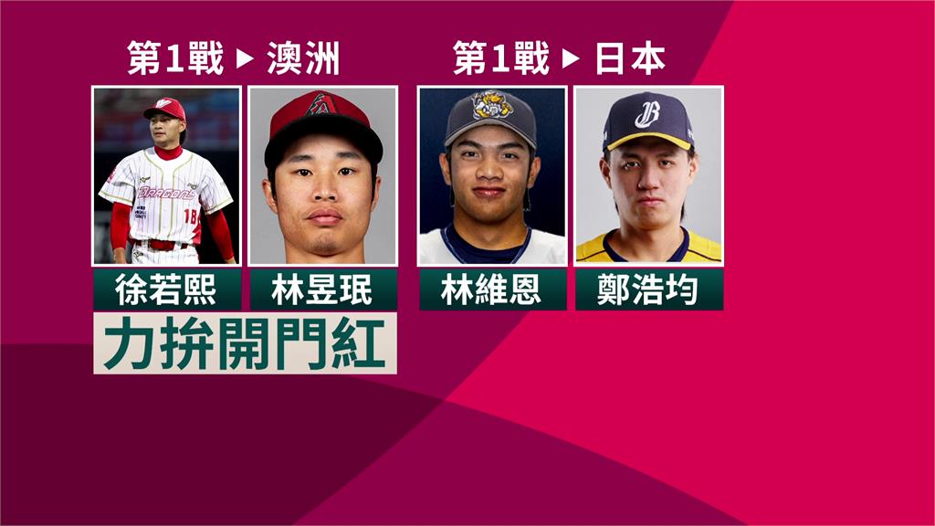 目前傳出中華隊教練團已擬定一套先發陣容藍圖,首戰對澳洲的比賽至關重要、一定要搶下勝利,後續才有戰術討論空間,教練團不排除派出徐若熙、林昱珉一左一右的王牌組合。第二戰迎戰實力強勁的日本,林維恩、鄭浩均被點名登板。