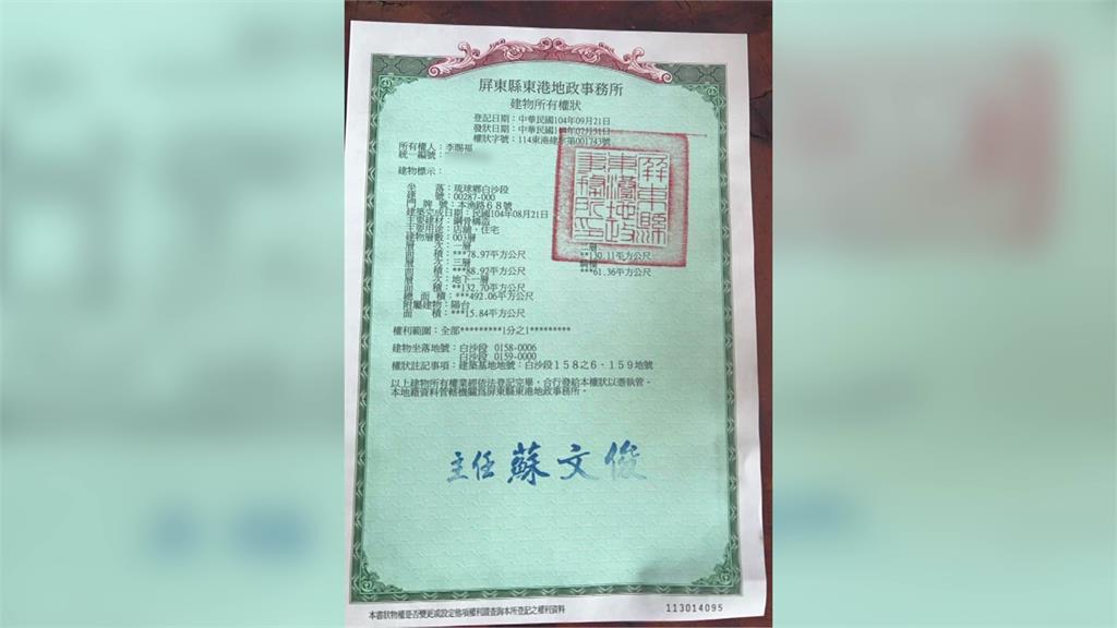 李四川秀權狀澄清。圖/台視新聞面對指控,李四川透過聲明澄清,表示從祖父輩開始,李家在小琉球的土地就是家族成員共同持分,強調這間環保公司,並不在他們所持分的「白沙段159-1」土地上。