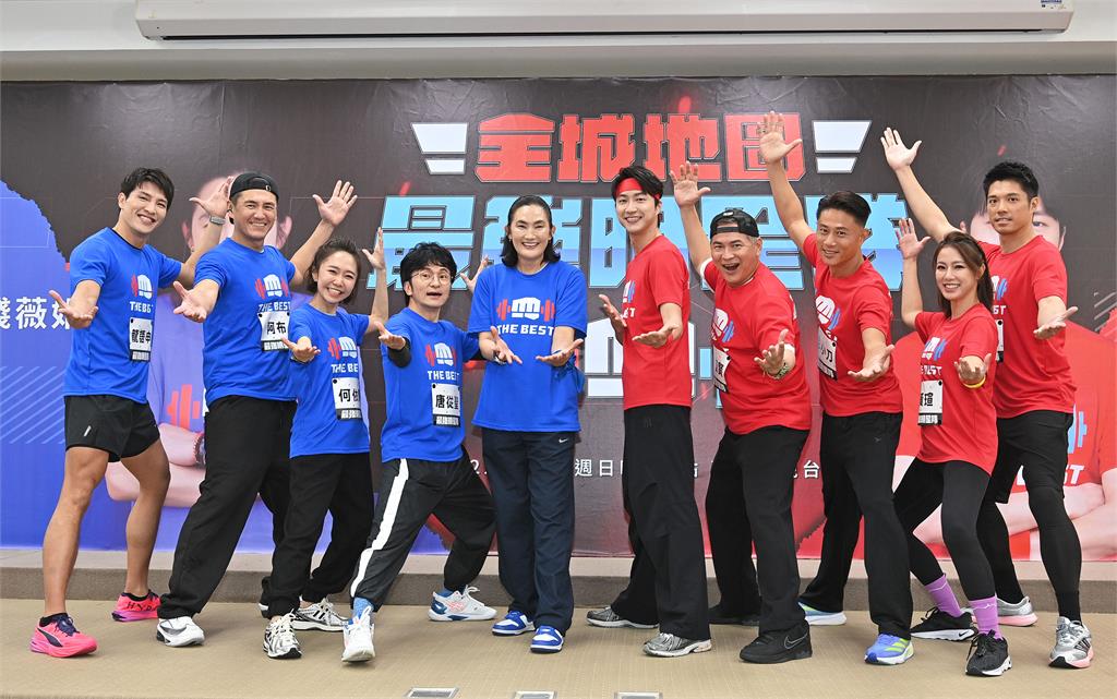 《全城地圖:最強明星隊》來賓左起惟毅、紀言愷、張雁名、廖苡喬、錢薇娟、體適能老師、江宏傑、琳妲、八弟、Max-彭小刀。圖/台視