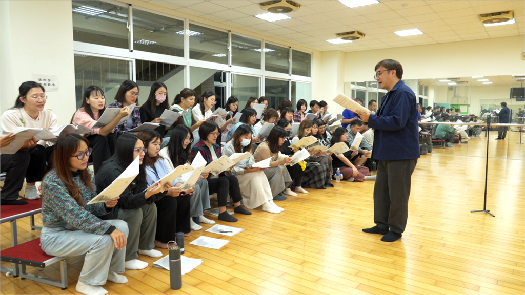 指揮家陳俊志帶領「尼布恩合唱團」成員進行排練,為演出活動做準備。圖/高雄市政府新聞局