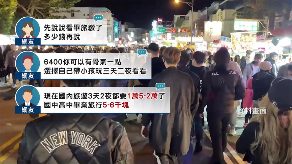 不過,也有網友替業者緩頰,認為畢旅餐點不能只看菜色,還得連同整體行程費用一併評估,網友說,現在國內旅遊3天2夜費用動輒破萬元,但高中畢旅預算通常只有5、6000元。非當事旅行社業者表示,目前國旅學生團一桌餐費大約落在2000元到2500元之間,若再加上住宿費用,以四人房估算,這樣的價格仍算合理。