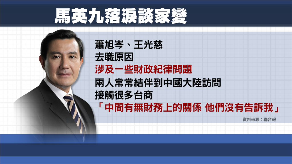 馬英九基金會前執行長蕭旭岑和王光慈遭基金會切割,馬英九接受專訪親自回應風波,透露兩人「涉及財政紀律」問題,經常到中國大陸訪問、接觸台商,但財務關係、是否接受捐款都沒有向他報告,讓他非常心痛,甚至會「暗中流淚」,更強調「六親不認」,已經整理具體事證,後續會送請司法調查;蕭旭岑今(25)天則強調,馬前總統有些事情忘記了,正告背後的有心人士居心何在?