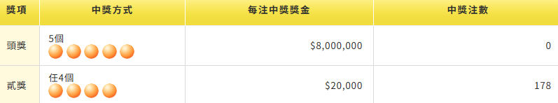 今彩539頭獎槓龜,貳獎開出178注。圖/翻攝自台彩官網3/26台彩完整獎號如下: