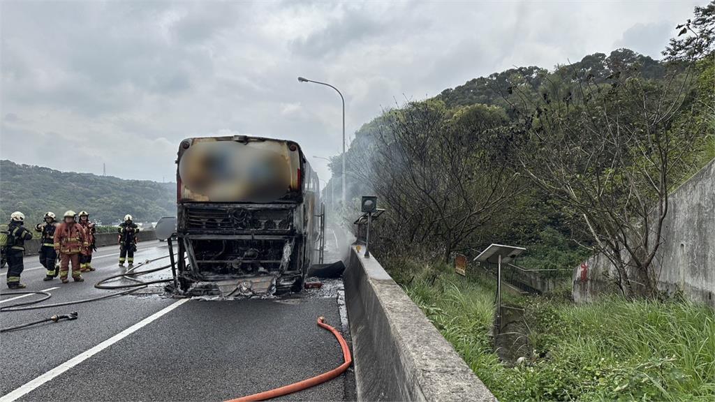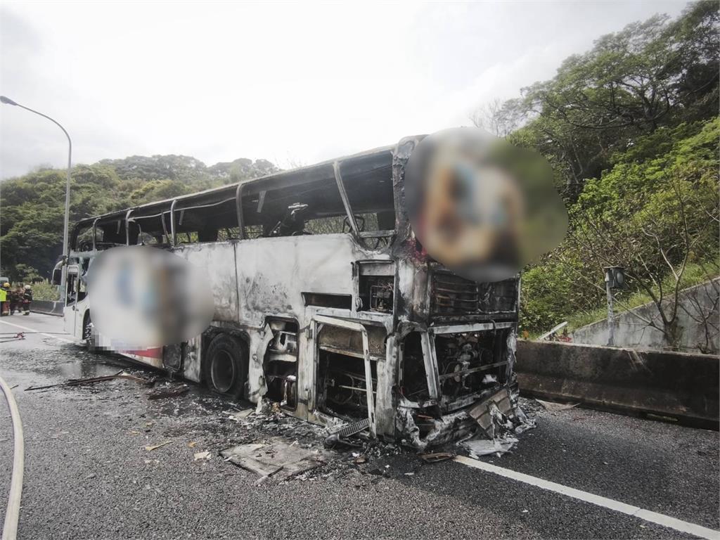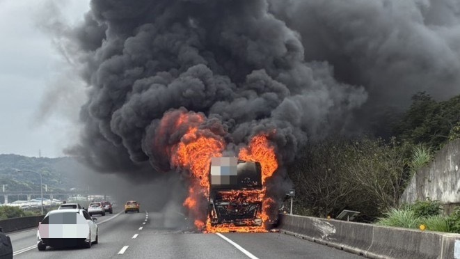 事發現場黑煙直竄天際,濃煙遮蔽車道視線,火勢猛烈,車輛幾近燒剩車殼,該輛遊覽車於桃園龜山路段不明原因起火燃燒,消防人員到場後立即佈水線灌救。據統計,車內1名司機、1名領隊及23名乘客均順利逃生,至於詳細起火原因仍待進一步調查釐清。