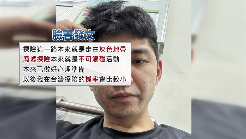 晚安小雞在廢棄醫院內大叫、搞破壞,最後驚動警方。圖/翻攝自晚安小雞臉書晚安小雞事後高調曬出在警察局裡的自拍照,稱探險這條路就是走在灰色地帶,去廢墟就是一項不可碰觸的活動,「只是可能以後我在台灣探險的機率會比較小了,因為我曾經的錯誤,導致自己在台灣已經不適合生存下去了」,並透露已經開始規劃去其他國家探險。