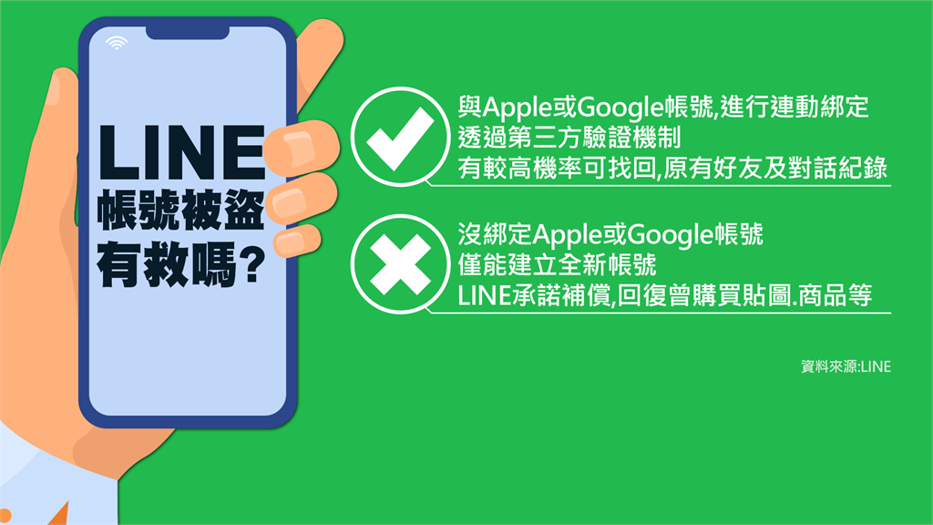 LINE帳號若無與Apple、Google帳號連動恐救不回。圖/台視新聞