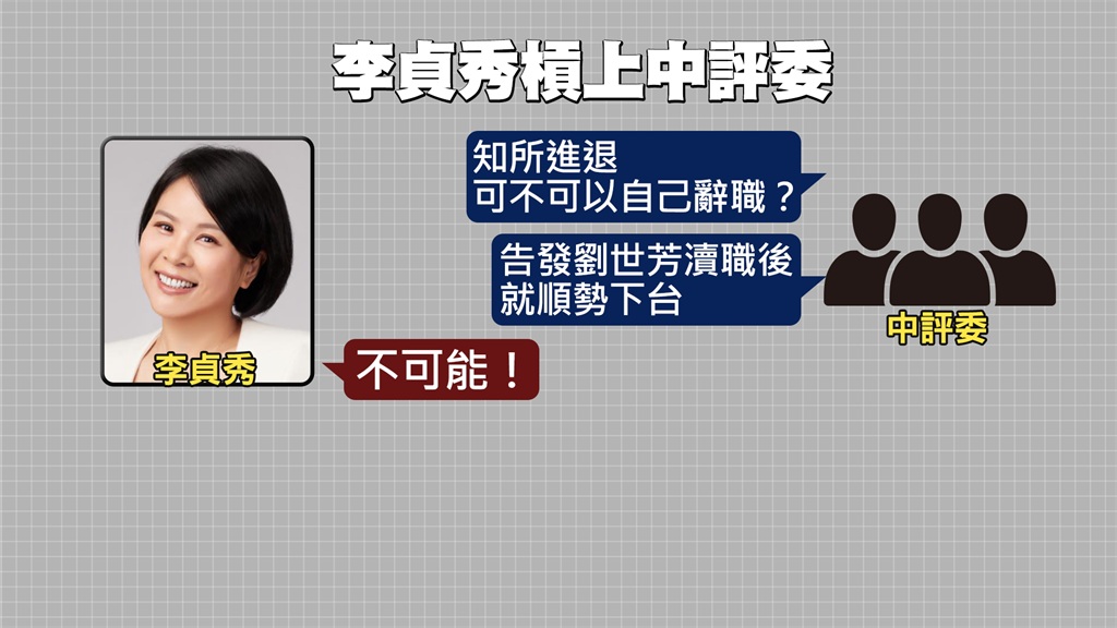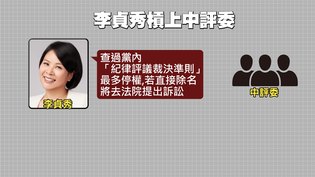 李貞秀日前在直播上爆料高虹安拿了柯文哲700萬,引發失言風暴,更被送中評會處理,沒想到開會時,有中評委請她知所進退,她卻似乎沒聽懂,另一名中評委才說大白話「可不可以自己辭職」,告發完劉世芳就離開,卻遭李貞秀回嗆「不可能」,還說自己查過民眾黨規定,最多只能停權,如果要將她除名,她將去法院提告!