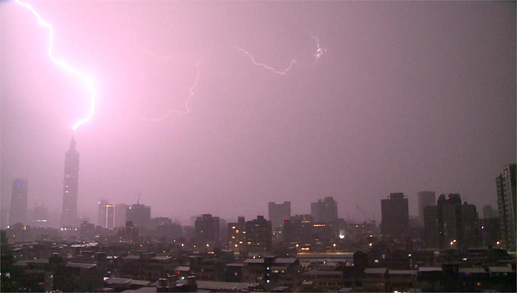 春雨鋒面通過,多個縣市從昨晚開始就下起大雷雨,透過縮時畫面可以看到,台北101一小時內就被落雷擊中三次,電閃雷鳴,畫面相當震撼!中央氣象署提醒,劇烈天氣正在發生,局部地區還可能出現9級以上強陣風,建議民眾留在安全的建築物內;外出多加留意行車安全。