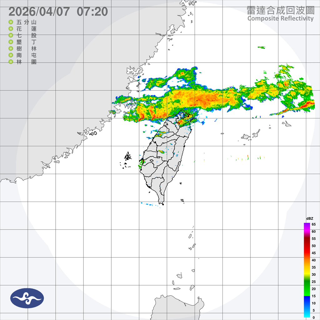 7日早上雷達合成回波圖。圖/翻攝自中央氣象署