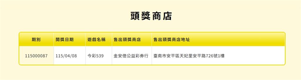 本期頭獎商店。圖/翻攝自台彩官網