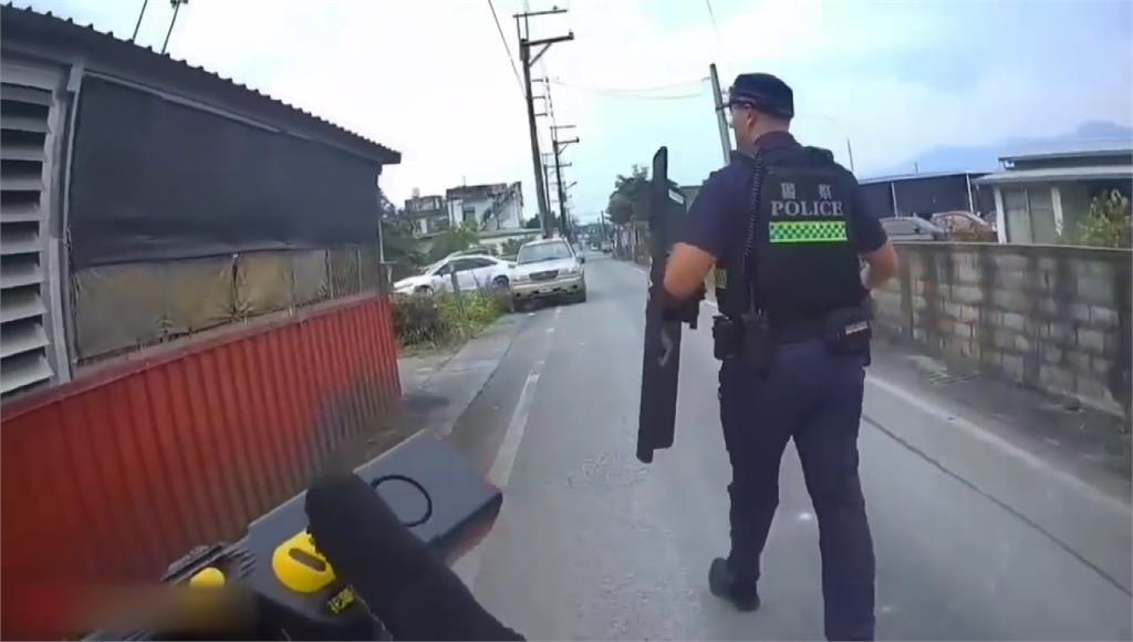 警方不敢大意,手持防彈盾牌火速趕抵現場。圖/台視新聞警方事後調查表示,現場並沒有槍擊或衝突,只不過楊男亮槍舉動讓鄰里間嚇得不輕,警方訊後依恐嚇罪嫌,將楊姓男子移送法辦。
