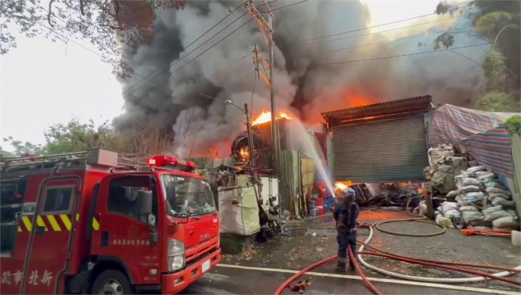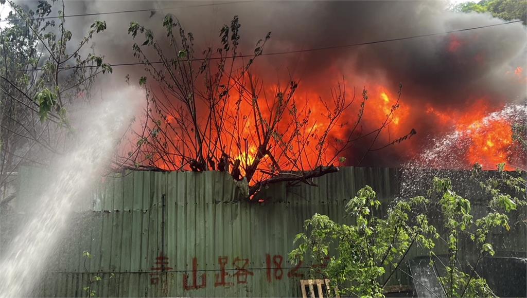 新莊鐵皮工廠大火,消防緊急派遣37車、90人到場灌救。圖/台視新聞 新北市新莊區壽山路今(12)日下午4點多發生嚴重火災,現場為囤放廢棄車輛的鐵皮工廠,起火原因不明,火勢迅速燃燒且相當猛烈,並伴隨大量濃煙,初估燃燒面積約200平方公尺。消防局獲報後,緊急派遣37車、90人到場灌救,所幸現場無人受困,消防單位也呼籲鄰近區域民眾關閉門窗,外出時配戴口罩,詳細起火原因仍待進一步釐清。新莊鐵皮工廠大火,烈焰狂燒200平方公尺。圖/台視新聞責任編輯/蔡尚晉