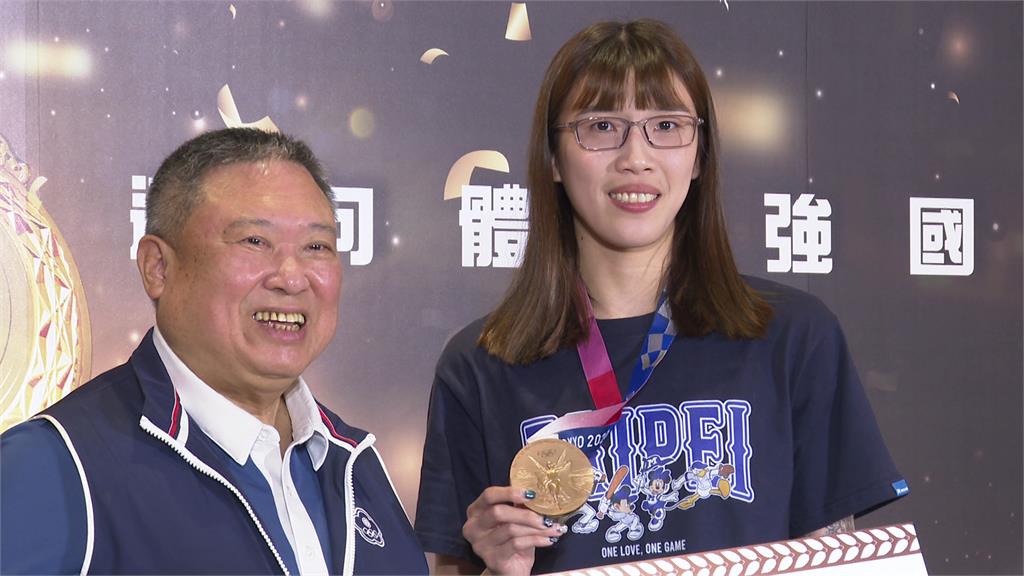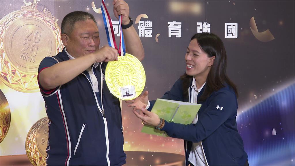 林鴻道這次回溯發放2020東京奧運及2024巴黎奧運奪牌獎金,包含金牌1000萬元、銀牌200萬元、銅牌100萬元,共18位選手獲頒,總計發出5000萬元。在今天的活動現場也有多名國手出席,舉重國手郭婞淳特別準備超大自製金牌與手寫卡片致謝。
