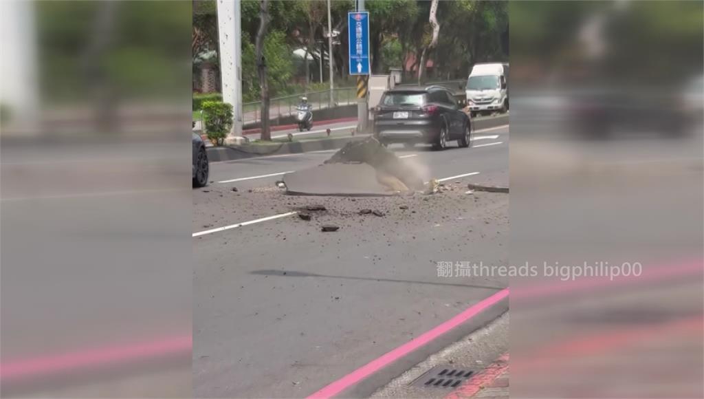 路面炸出一個大洞、白煙狂竄。圖/翻攝自Threads@bigphilip00第一時間轄區警方跟消防隊立刻到場管制、疏導交通,且因該路段沒有地下天然氣管線,暫時排除是因瓦斯外洩導致。目前工務局、台電等相關單位已到場處理,台電人員初步懷疑是管線設備異狀導致,但詳細爆炸原因還有待調查釐清。