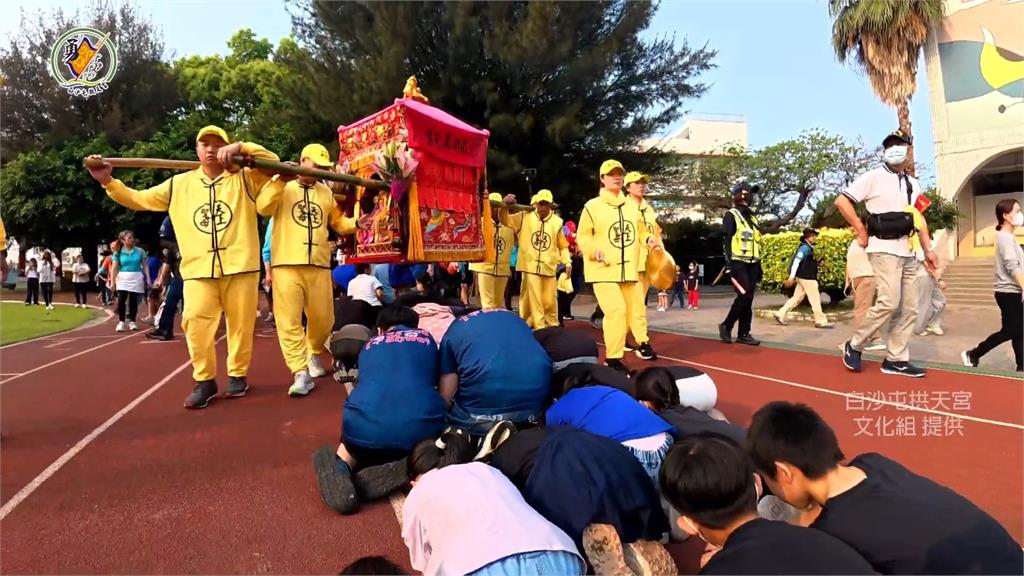 白沙媽停駕西螺福興宮,找「太平媽」聊聊天。圖/白沙屯拱天宮文化組提供大甲媽接力起駕 40名摔角教官防搶轎