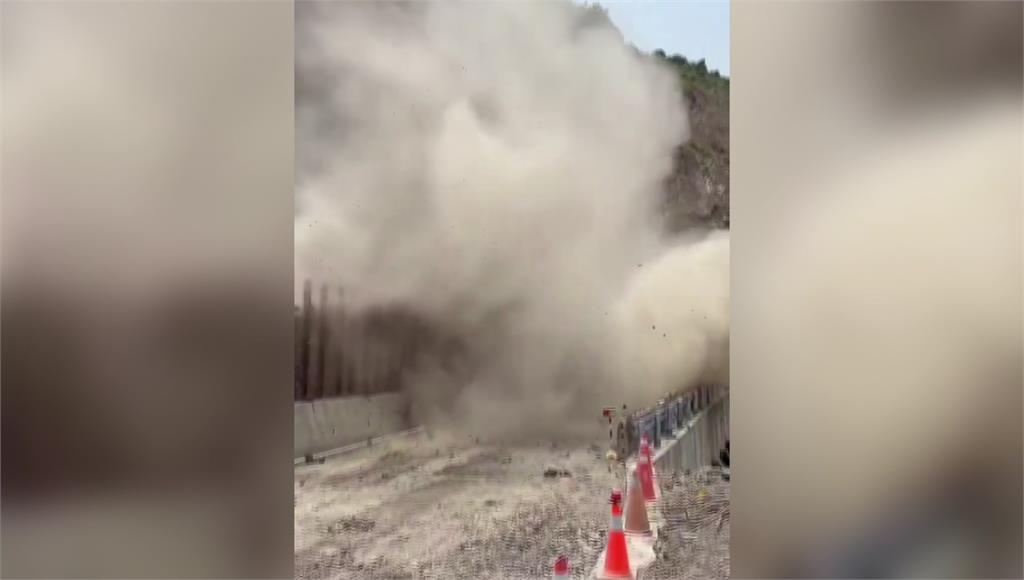 南投力行產業道路發生坍方。圖/台視新聞 位於南投仁愛鄉力行產業道路週五(17)發生落石崩塌意外後,今(18)天中午和下午又發生坍方,現場塵土煙霧瀰漫。南投仁愛鄉力行產業道路因地質脆弱,容易坍方,有「惡路」之稱,今天又在位於31k附近路段的邊坡上方發生大小落石不斷,彷彿「石頭雨」一般,土石大量滑落,瞬間揚起大量塵煙,嚇得施工工人和通過居民紛紛逃離現場,好不容易快搶通的道路,因為邊坡坍方恐怕又要延後。南投力行產業道路發生坍方,落石不斷。圖/台視新聞責任編輯/綜合報導