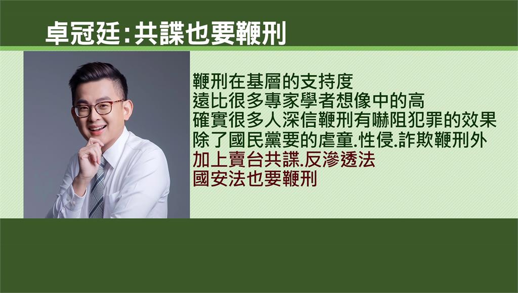 卓冠廷表示共諜、違反國安法者也可納入鞭刑範圍。圖/台視新聞