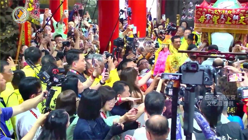 16號迎來重頭戲,白沙媽於上午11點左右抵達北港朝天宮,數萬名信眾夾道相迎,高喊「進喔!」場面相當震撼,空拍機也記錄下這段萬人空巷迎接媽祖的壯觀畫面。