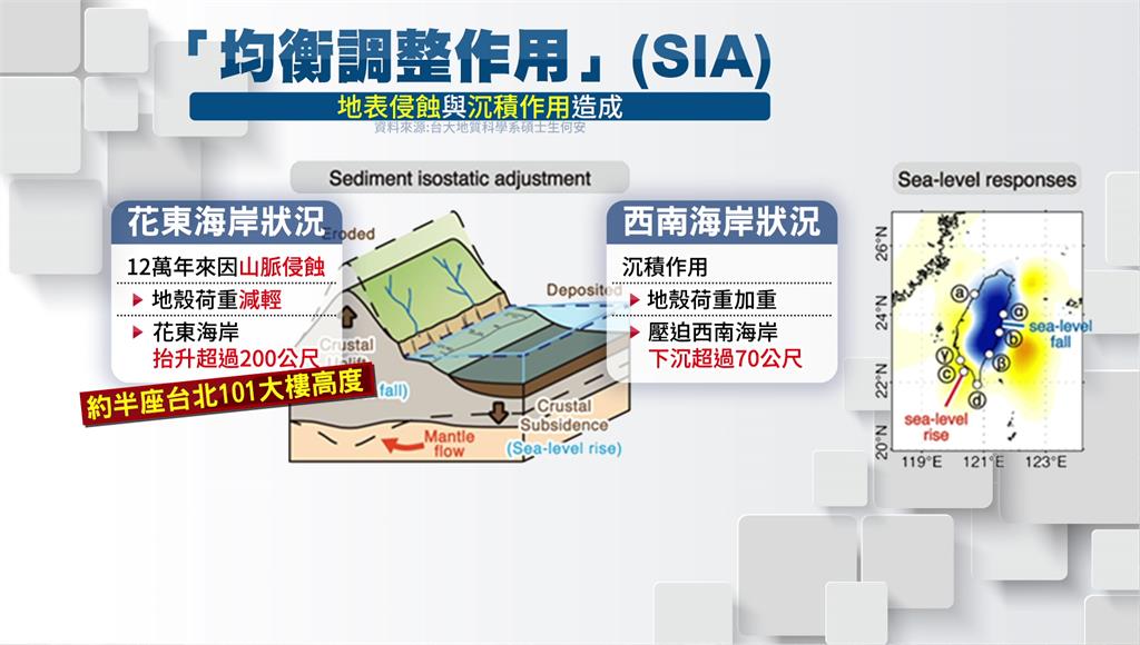 地殼荷重減輕讓花東海岸抬升超過200公尺,約是半座台北101的高度。圖/台視新聞