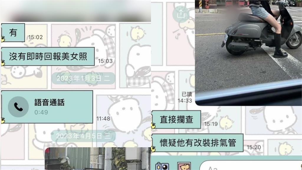 投訴隊員指出,劉姓代理股長要求外勤同仁在執勤時拍攝女性影像,並透過通訊軟體回報,而如果沒有拍攝照片,就會遭到他百般刁難。從曝光的對話紀錄上還可以看到該代理股長傳訊「沒有即時回報美女照」、「直接攔查,懷疑他有改裝排氣管」等內容。