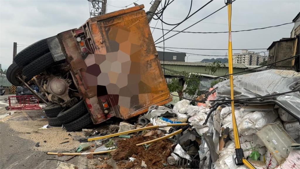 砂石車失控翻覆撞上9輛車。圖/台視新聞責任編輯/蔡尚晉